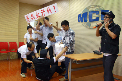 為達(dá)到培訓(xùn)效果,此次培訓(xùn)還設(shè)置兩個對抗性比賽環(huán)節(jié):一是比學(xué)風(fēng)、比紀(jì)律,通過媒體現(xiàn)場監(jiān)督兩支團(tuán)隊是否認(rèn)真參會,是否遵守會議紀(jì)律和行為規(guī)范等;二是比業(yè)務(wù)、比管理,首次采用“情景模擬”的形式,由兩個團(tuán)隊隨機(jī)抽取題目,分兩個環(huán)節(jié)比拼市場營銷和突發(fā)安全事故、民工討薪及涉媒應(yīng)急處理的水平。