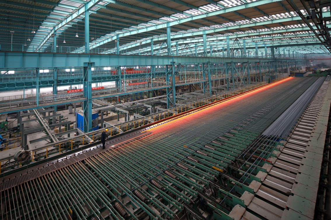圖為威鋼高速線材生產(chǎn)線——中棒步進(jìn)式冷床生產(chǎn)場(chǎng)景