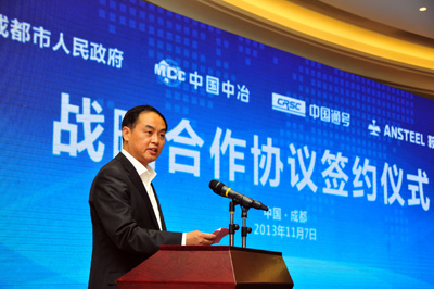 在全體與會(huì)人的見證下,中國中冶副總裁王秀峰代表中國中冶與成都市政府簽署了戰(zhàn)略合作框架協(xié)議。根據(jù)協(xié)議,雙方將在建設(shè)中冶西部區(qū)域中心、中冶天府新區(qū)創(chuàng)新科研基地、實(shí)施舊城改造、參與城市基礎(chǔ)設(shè)施項(xiàng)目等領(lǐng)域開展合作。