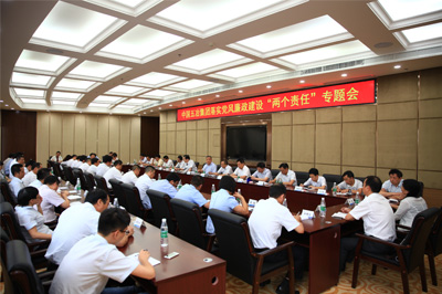 本次專題會由集團(tuán)公司黨委書記、董事長程并強親自主持。各單位黨委(總支)書記匯報了黨風(fēng)廉政建設(shè)“兩個責(zé)任”的開展情況。集團(tuán)公司黨委副書記、紀(jì)委書記、副總經(jīng)理劉偉傳達(dá)了習(xí)近平關(guān)于黨員干部作風(fēng)建設(shè)的講話精神、中央關(guān)于加強保密工作的文件精神、中冶集團(tuán)關(guān)于落實黨風(fēng)廉政建設(shè)“兩個責(zé)任”的文件精神,同時就集團(tuán)公司紀(jì)委履行黨風(fēng)廉政建設(shè)監(jiān)督責(zé)任情況進(jìn)行了匯報。