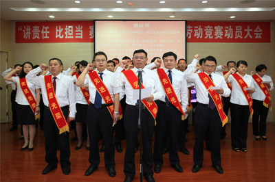 集團(tuán)公司董事長、黨委書記程并強(qiáng)在會(huì)上作重要講話,對(duì)演講效果進(jìn)行了點(diǎn)評(píng),就如何開展好勞動(dòng)競(jìng)賽進(jìn)行了強(qiáng)調(diào)。他說:演講發(fā)言的八名員工代表,既有集團(tuán)公司領(lǐng)導(dǎo),也有機(jī)關(guān)部門負(fù)責(zé)人和二級(jí)單位負(fù)責(zé)人,還有基層一線的項(xiàng)目部負(fù)責(zé)人,他們分別從轉(zhuǎn)型、提升、擴(kuò)張發(fā)展方面談了講責(zé)任、敢擔(dān)當(dāng)?shù)母惺?、體會(huì)以及個(gè)人的努力和實(shí)踐,體現(xiàn)了他們的敬業(yè)和奉獻(xiàn),從他們身上看到了我們五冶人敢擔(dān)當(dāng)?shù)木瘢吹搅藘杉?jí)經(jīng)營層敢于拼搏的精神、敢于奮斗的精神、努力的工作狀態(tài),體現(xiàn)了五冶員工的敢擔(dān)當(dāng)、講敬業(yè)、負(fù)責(zé)任的精神;從他們身上看到了集團(tuán)公司轉(zhuǎn)型、提升、擴(kuò)張發(fā)展戰(zhàn)略的落實(shí),堅(jiān)定了我們發(fā)展的信心和決心。在開展勞動(dòng)競(jìng)賽動(dòng)員中,集團(tuán)公司各級(jí)勞模和先進(jìn)典型的代表進(jìn)行了鄭重承諾和集體倡議,有氣勢(shì)、有力量、鼓舞人心,為他們的擔(dān)當(dāng)精神、敬業(yè)精神和責(zé)任意識(shí)點(diǎn)贊。
