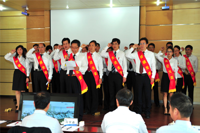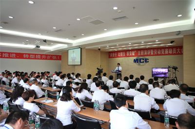 “認(rèn)真踐行‘打造競(jìng)爭(zhēng)優(yōu)勢(shì)’的發(fā)展文化、‘嚴(yán)細(xì)新實(shí)’的管理文化、‘敢擔(dān)當(dāng)看療效’的責(zé)任文化,充滿勇氣、充滿信心、充滿激情,奮力開拓市場(chǎng)、全面提升產(chǎn)品、促進(jìn)經(jīng)營創(chuàng)效,為實(shí)現(xiàn)‘轉(zhuǎn)型、提升、擴(kuò)張’戰(zhàn)略目標(biāo)而努力奮斗!”5月4日上午,中國五冶大廈三樓多功能廳和上??萍紭橇鶚谴髲d里掌聲雷動(dòng),一場(chǎng)以“講責(zé)任?比擔(dān)當(dāng)?賽貢獻(xiàn)”的主題演講和“比貢獻(xiàn)?看療效?保目標(biāo)”的勞動(dòng)競(jìng)賽動(dòng)員大會(huì)正在進(jìn)行。集團(tuán)公司領(lǐng)導(dǎo)、董事會(huì)秘書、總經(jīng)理助理、副三總師,集團(tuán)公司機(jī)關(guān)部門正副職、主管,四川地區(qū)各二級(jí)單位班子成員,上海有限公司班子成員,上海有限公司機(jī)關(guān)部門正副職、主管,上海有限公司各單位班子成員共三百余名參加。會(huì)議由集團(tuán)公司董事、總經(jīng)理蒙昌嘉主持。