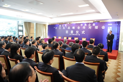? ? 簽約儀式由湛江市副市長莊曉東主持,在簡樸熱烈的氣氛中進(jìn)行,劉小華書記作了熱情洋溢的講話。劉小華同志代表湛江市委、市政府對中冶集團(tuán)等15家央企領(lǐng)導(dǎo)的到訪表示熱烈的歡迎,并重點介紹了近幾年湛江市的發(fā)展?fàn)顩r,對過去與中冶集團(tuán)等央企的愉快合作給予了高度的評價,并表示堅信各方在湛江接下來的項目合作中會取得新的更大的成功。?