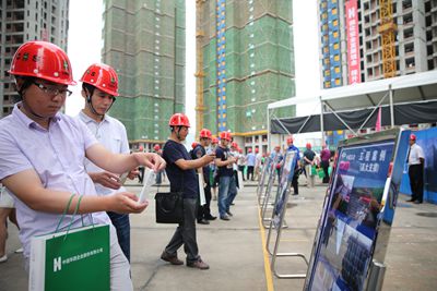 ? ?6月15日上午,由四川省住房和城鄉(xiāng)建設(shè)廳主辦,成都市城鄉(xiāng)建設(shè)委員、復(fù)地股份有限公司、省安全科學(xué)技術(shù)研究院、省建設(shè)工程質(zhì)量安全與監(jiān)理協(xié)會(huì)、成都高新質(zhì)安站等單位協(xié)辦,中國五冶集團(tuán)、中國華西、中建三局等單位承辦的四川省建筑工程質(zhì)量安全標(biāo)化現(xiàn)場觀摩會(huì)在復(fù)地金融島項(xiàng)目現(xiàn)場舉行。