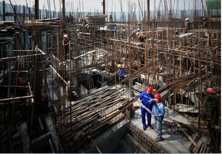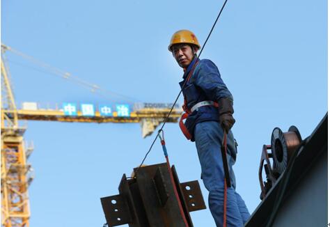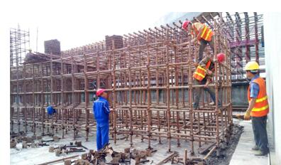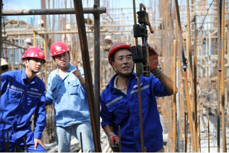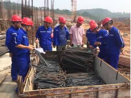 新華之星B區(qū)核心筒正在現(xiàn)場(chǎng)檢查鋼筋焊接的工作人員