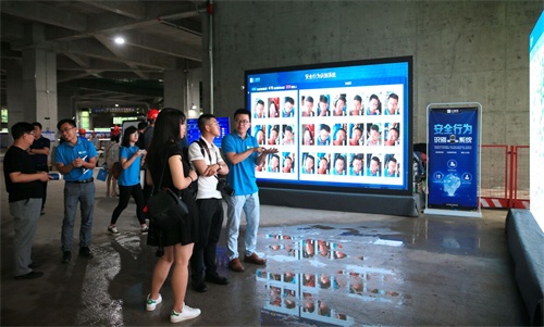 參會人員在現(xiàn)場了解安全行為識別系統(tǒng)