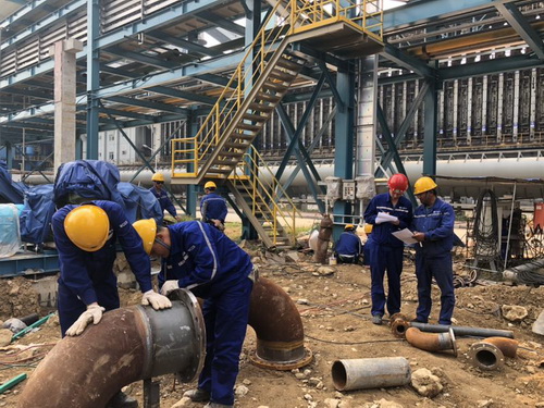 上海機(jī)電公司承建的寶鋼電廠205米鈦鋼復(fù)合板煙囪焊接項目