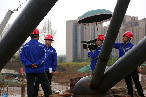 10月1日上午,成都市下起小雨。集團(tuán)公司文化中心記者團(tuán)一行走進(jìn)成都露天音樂公園項(xiàng)目的建設(shè)現(xiàn)場。記者團(tuán)在現(xiàn)場看到,盡管小雨一直淅淅瀝瀝,工地現(xiàn)場也比較泥濘,但各個作業(yè)面均在正常施工,到處都是一副熱火朝天的景象。